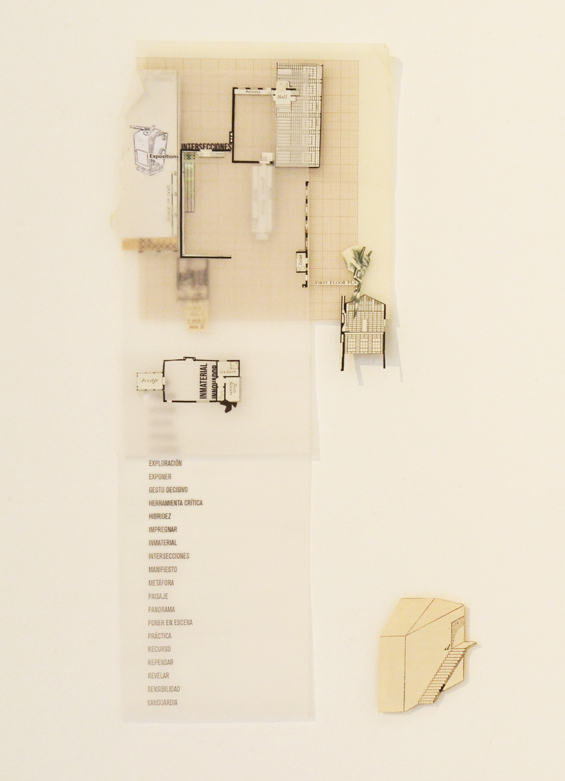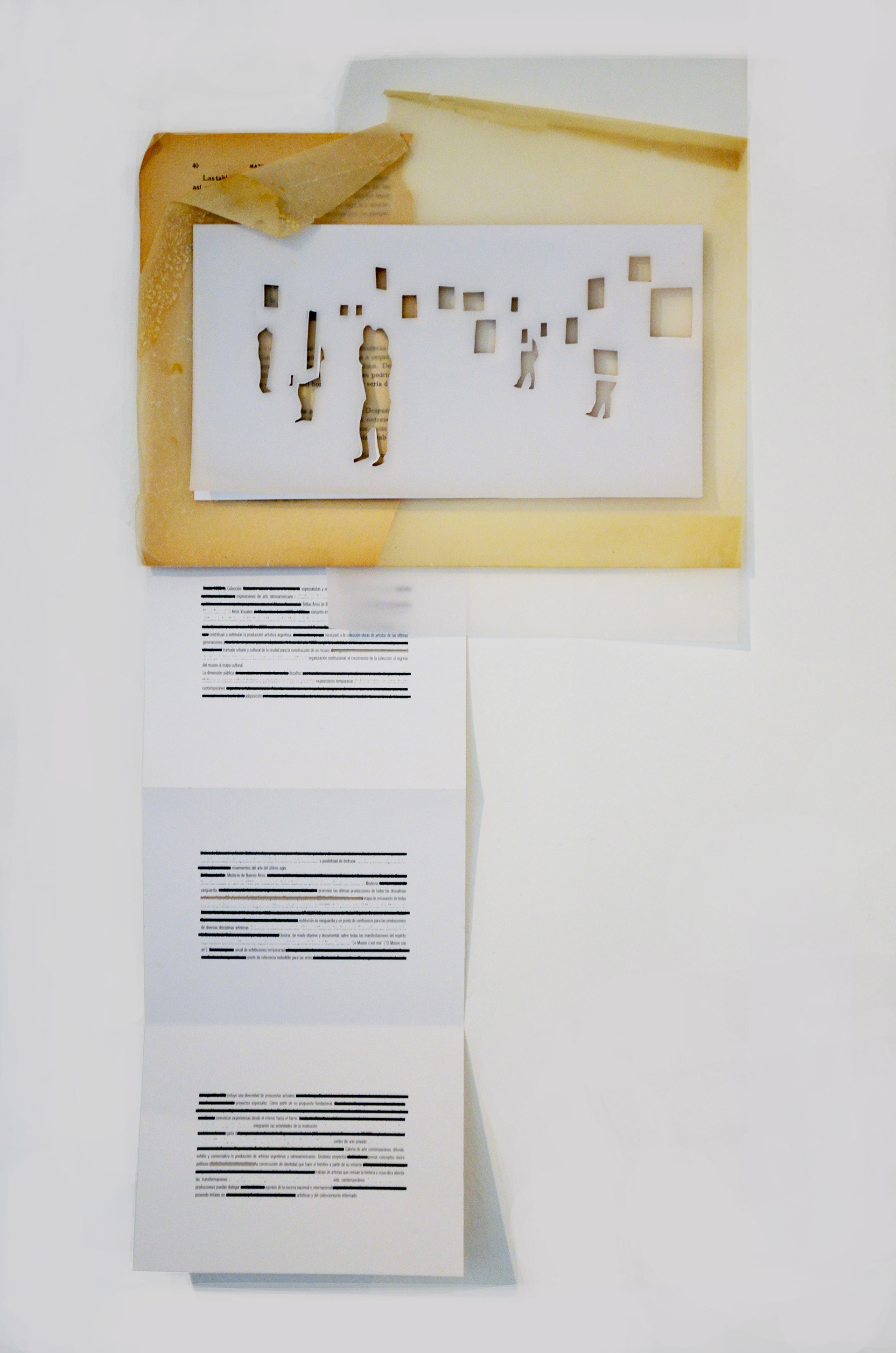 Serie de collages analógicos que explora el espacio e imaginario del museo contemporáneo a través de fotografías propias, representaciones arquitectónicas y papeles encontrados.